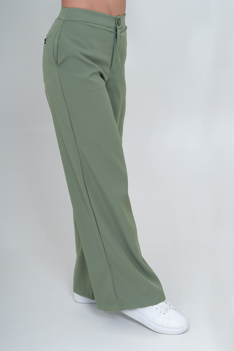 Pantalón bota recta, ajuste con botón, con bolsillos en la parte de atrás, horma holgada, 100% poliester