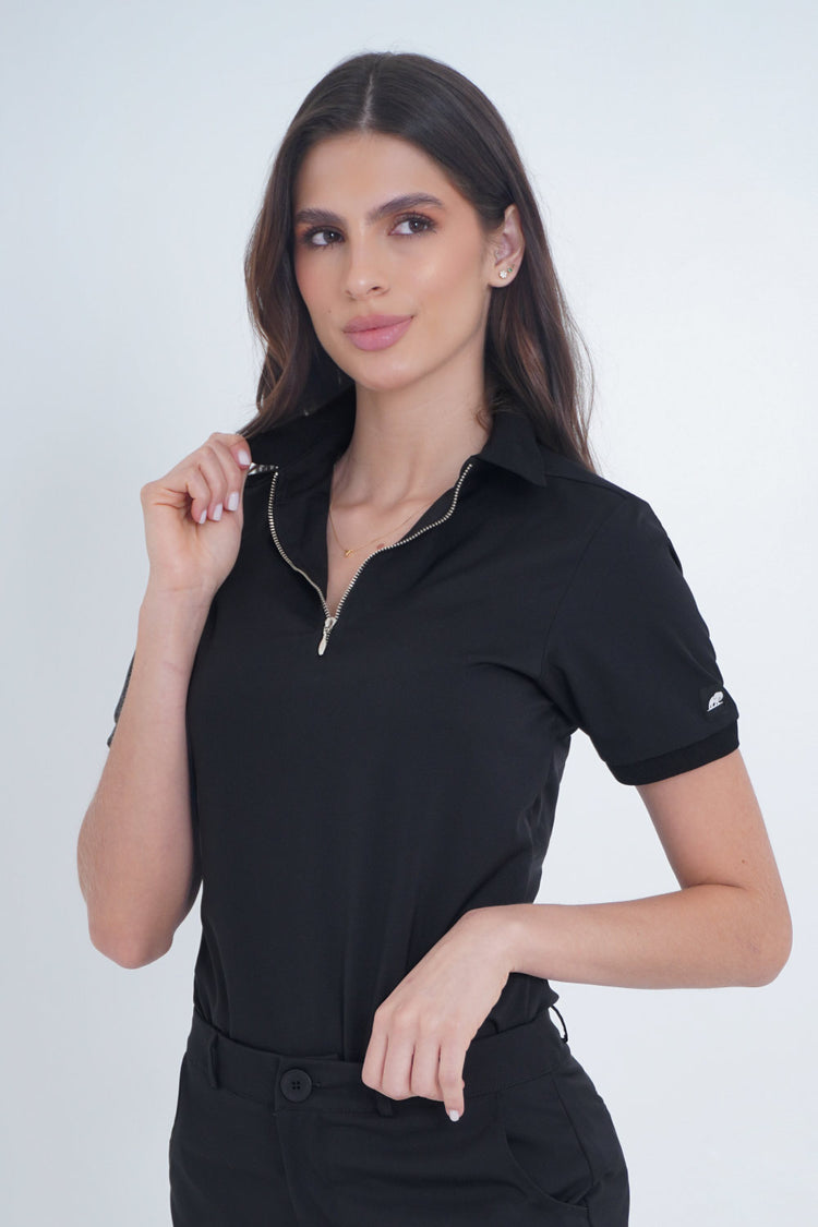 Características Camisa tipo polo con cierre metálico frontal. horma ceñida Tecnologías Antífluido y protección solar Composición 96% Poliester 4% Lycra