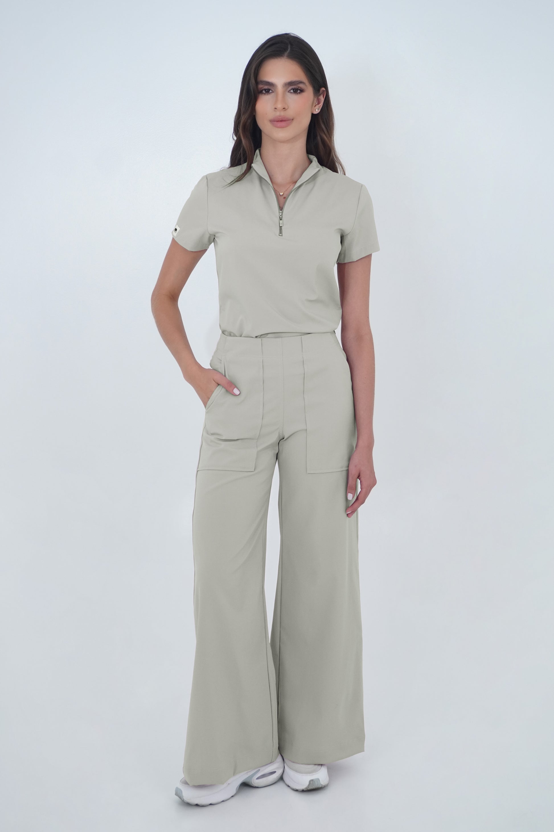 Este uniforme médico es la combinación perfecta entre versatilidad, estilo y funcionalidad. La camisa con cierre integrado te permite crear looks diferentes, y el pantalón bota recta amplia, con bolsillos prácticos, se adapta a cualquier situación