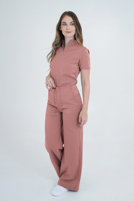 Pantalón bota recta con bolsillos delanteros, laterales y traseros, ajuste con botón, horma holgada Tecnologías Antífluido y protección solar